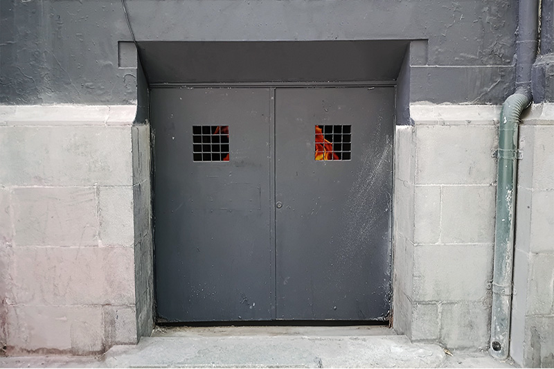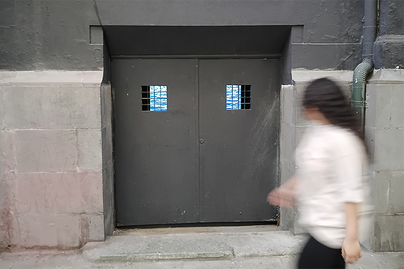 La instalación se observa y escucha a través de las dos ventanas existentes en la puerta de ingreso. Esta situación permitió una participación activa del público que transitaba por el exterior del edificio.