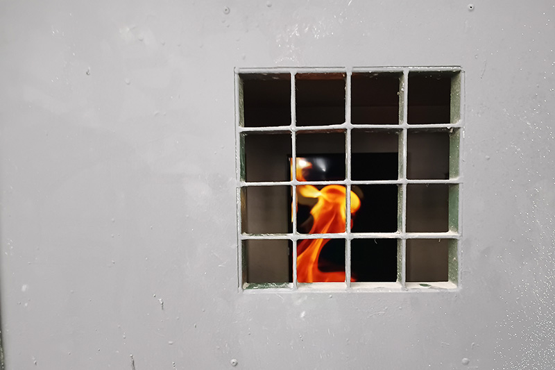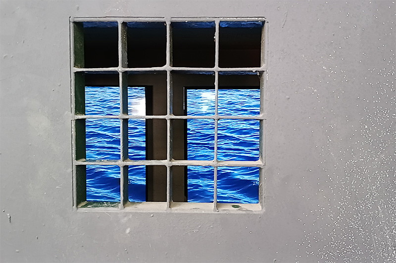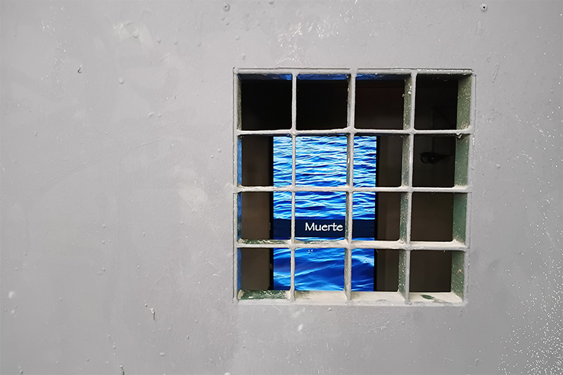 La instalación se compone de dos videos; el primero exhibe la oscilación y el ímpetu de un conjunto de llamas; el segundo muestra el rítmico y apacible movimiento del mar. Este último video se ve interrumpido por la aparición súbita de las palabras: mar, madre, martirio y muerte. Ambos videos se reprodujeron a través de dos monitores montados de forma vertical en el muro.